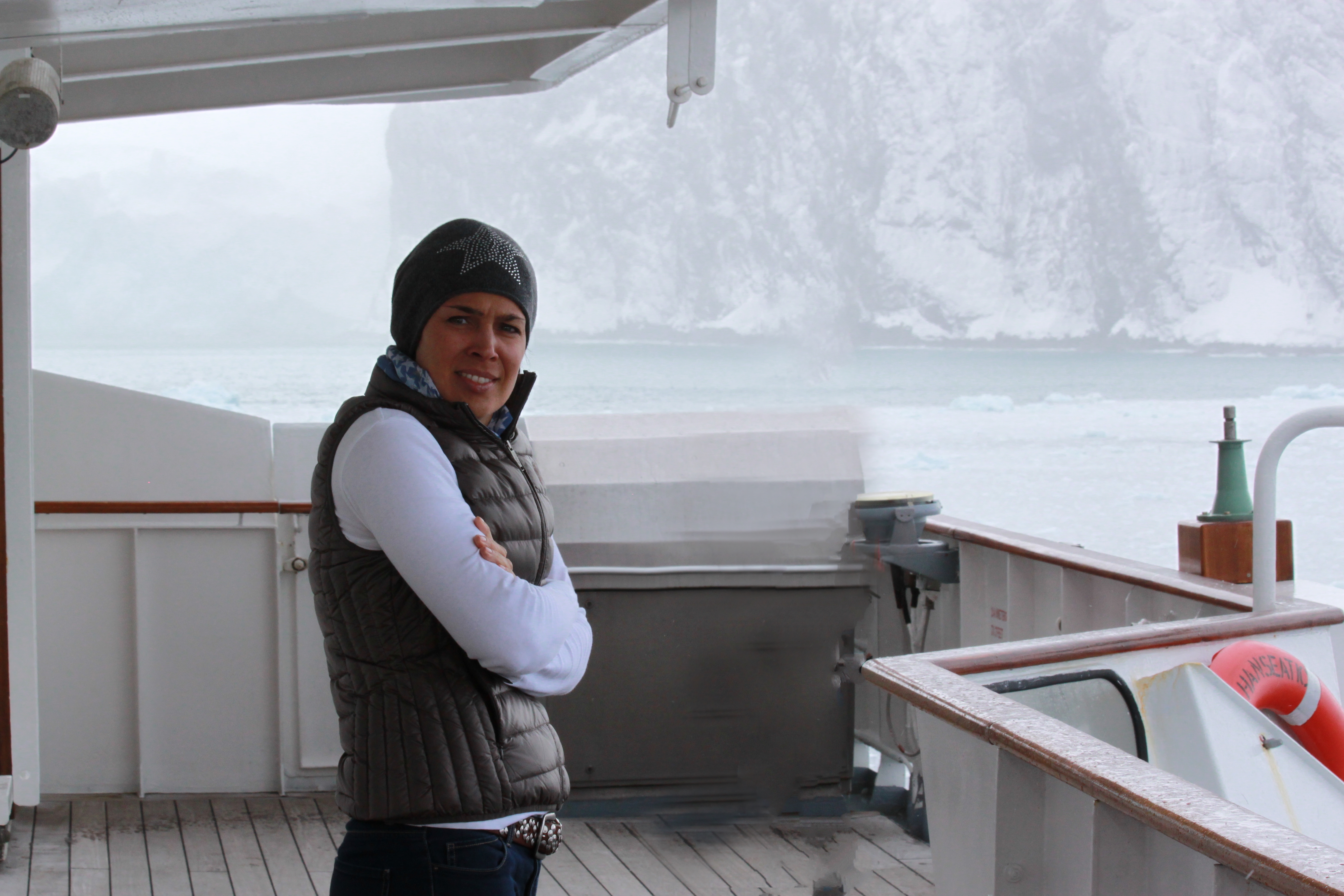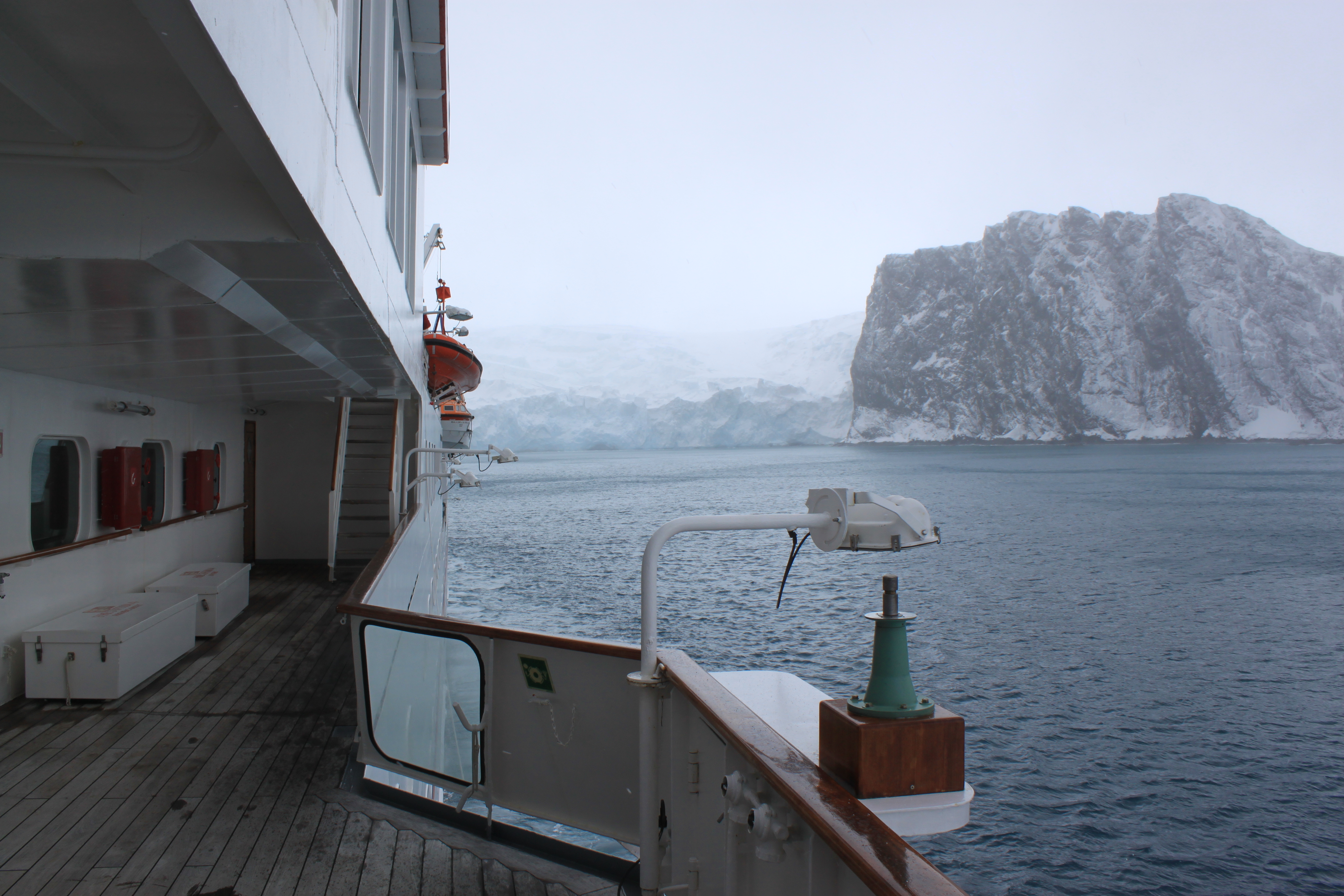 Auch unsere Hoffnung, eine Zodiac-Tour an der Küste zu unternehmen, zerschlägt sich: zwei Versuche werden gestartet, doch heftiger Wind verhindert eine Ausfahrt. Ausserdem hat sich bei unserer Ankunft ein gigantischer Eisberg auf unseren Ankerplatz «platziert», zu gefährlich wäre es von diesem in der Bucht eingeschlossen zu werden. Kapitän Gerke schafft es trotz allem, die Hanseatic so nah an die Küste heranzusteuern, dass wir die Überwinterungsstelle von Shackletons Männern ausmachen können.
