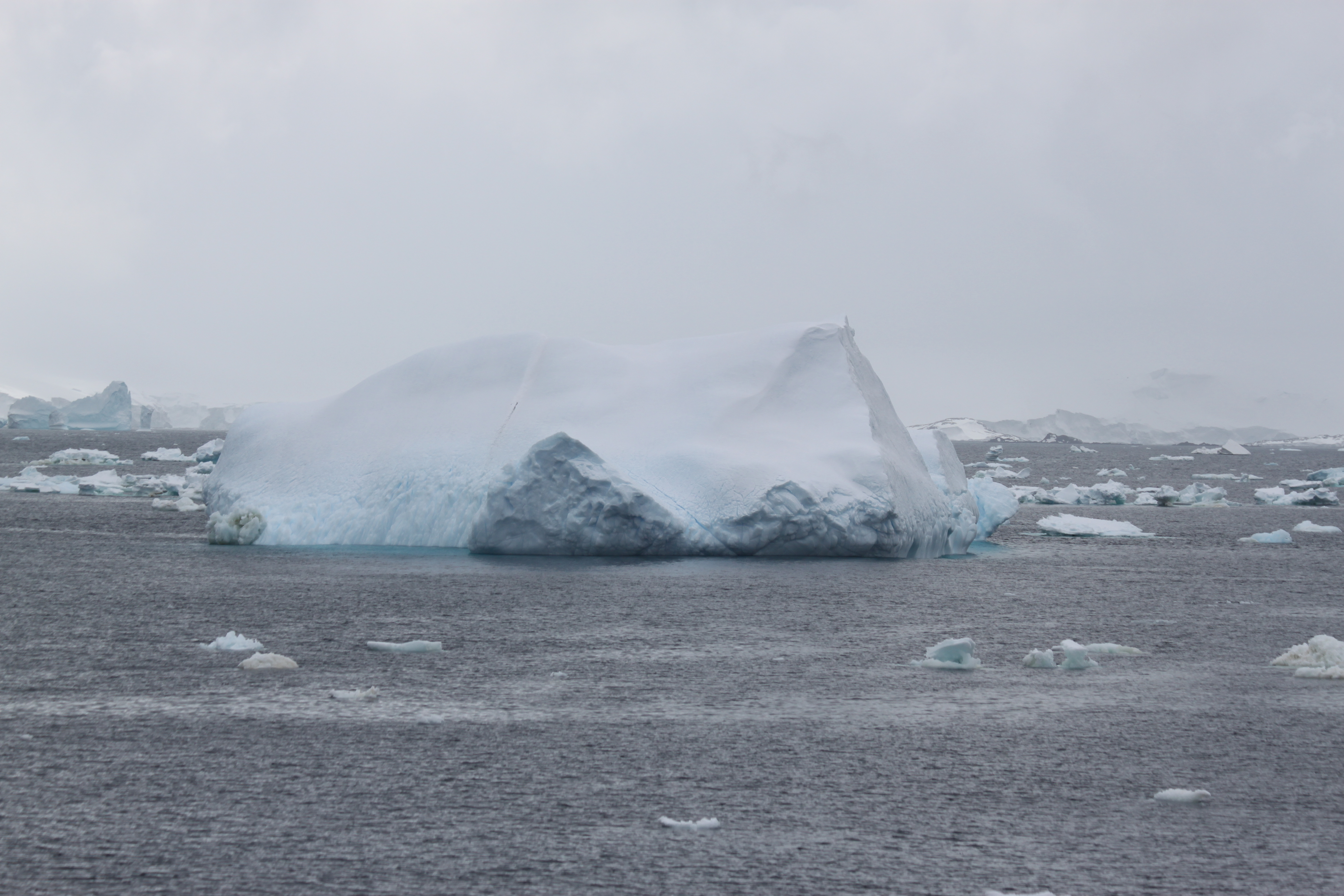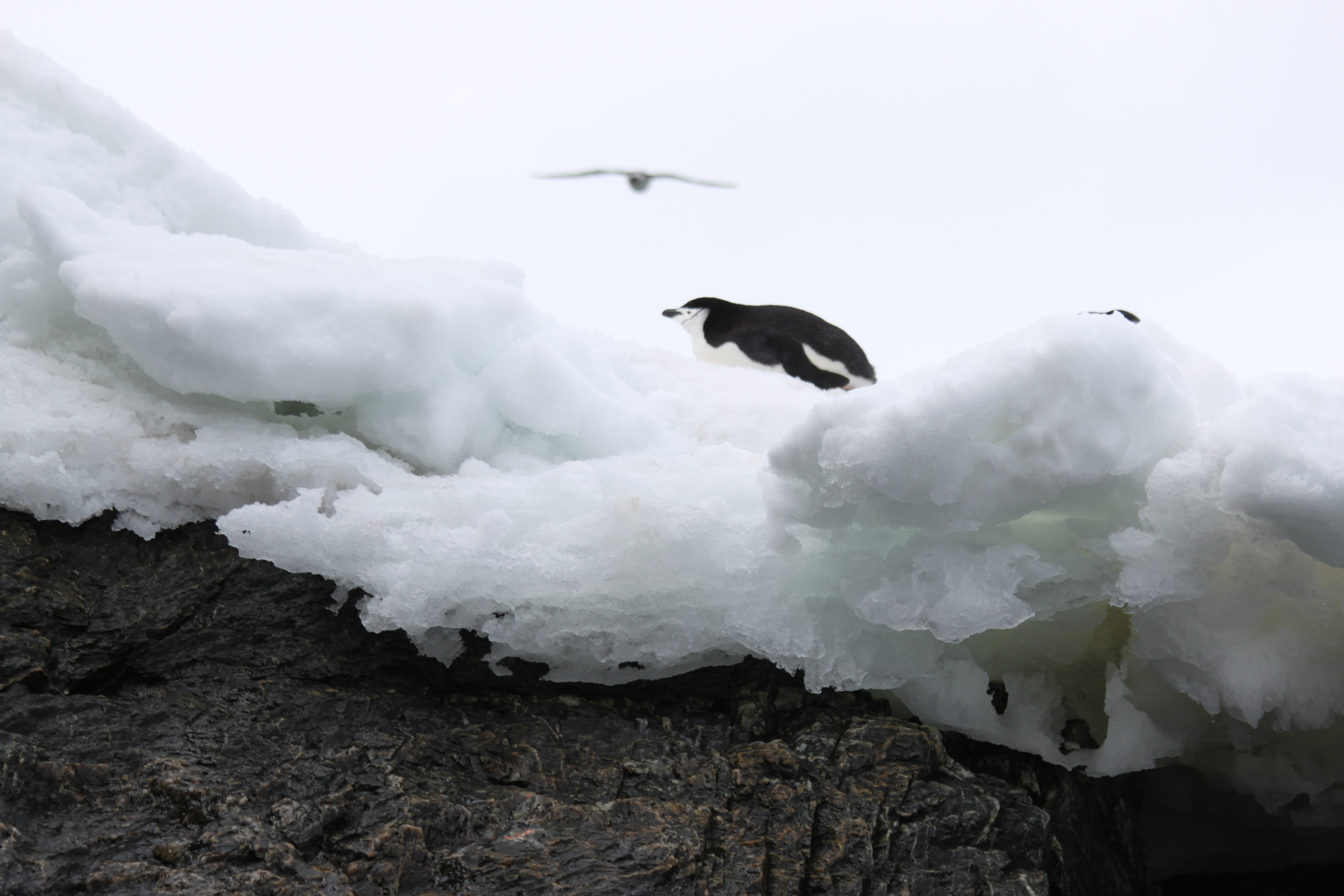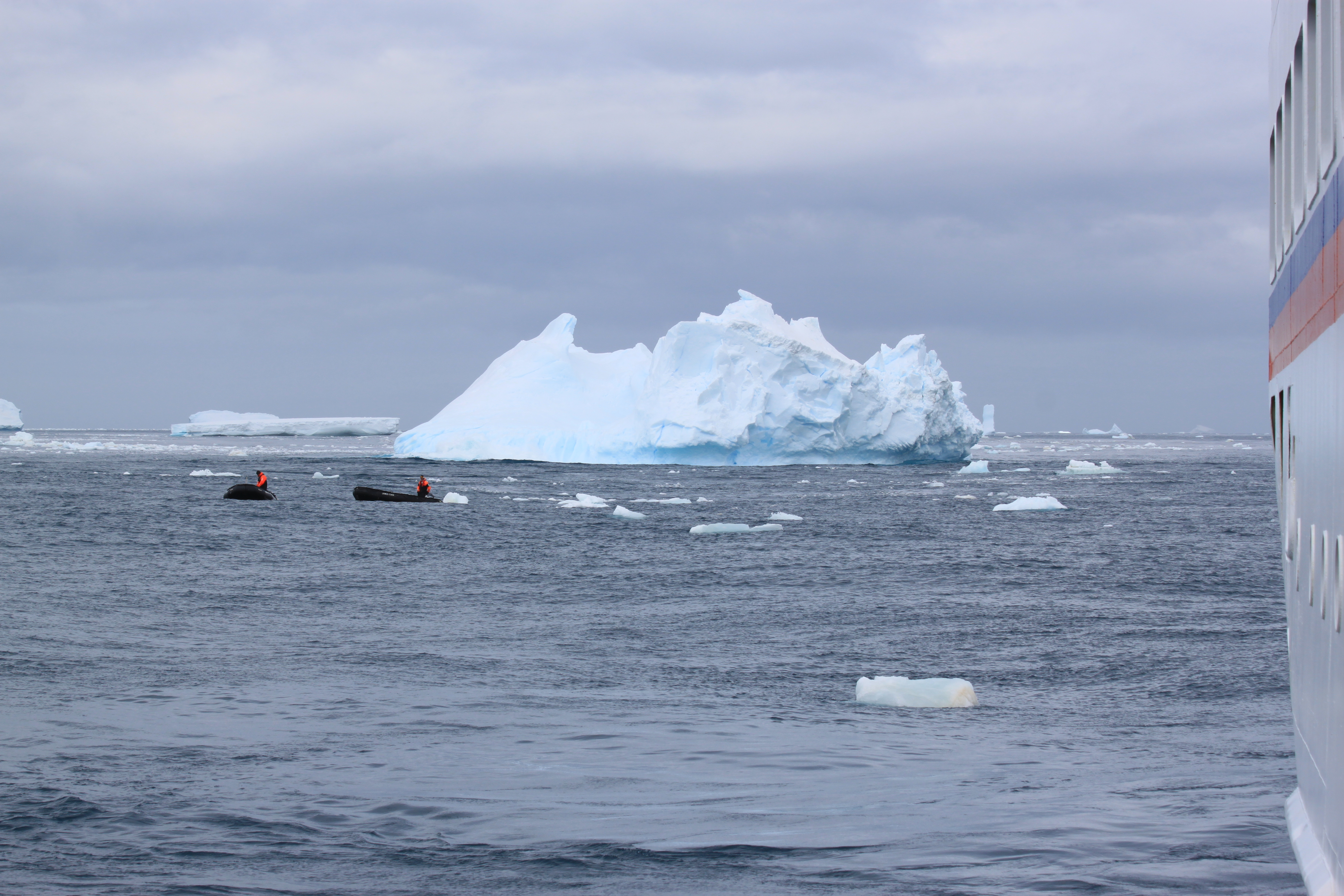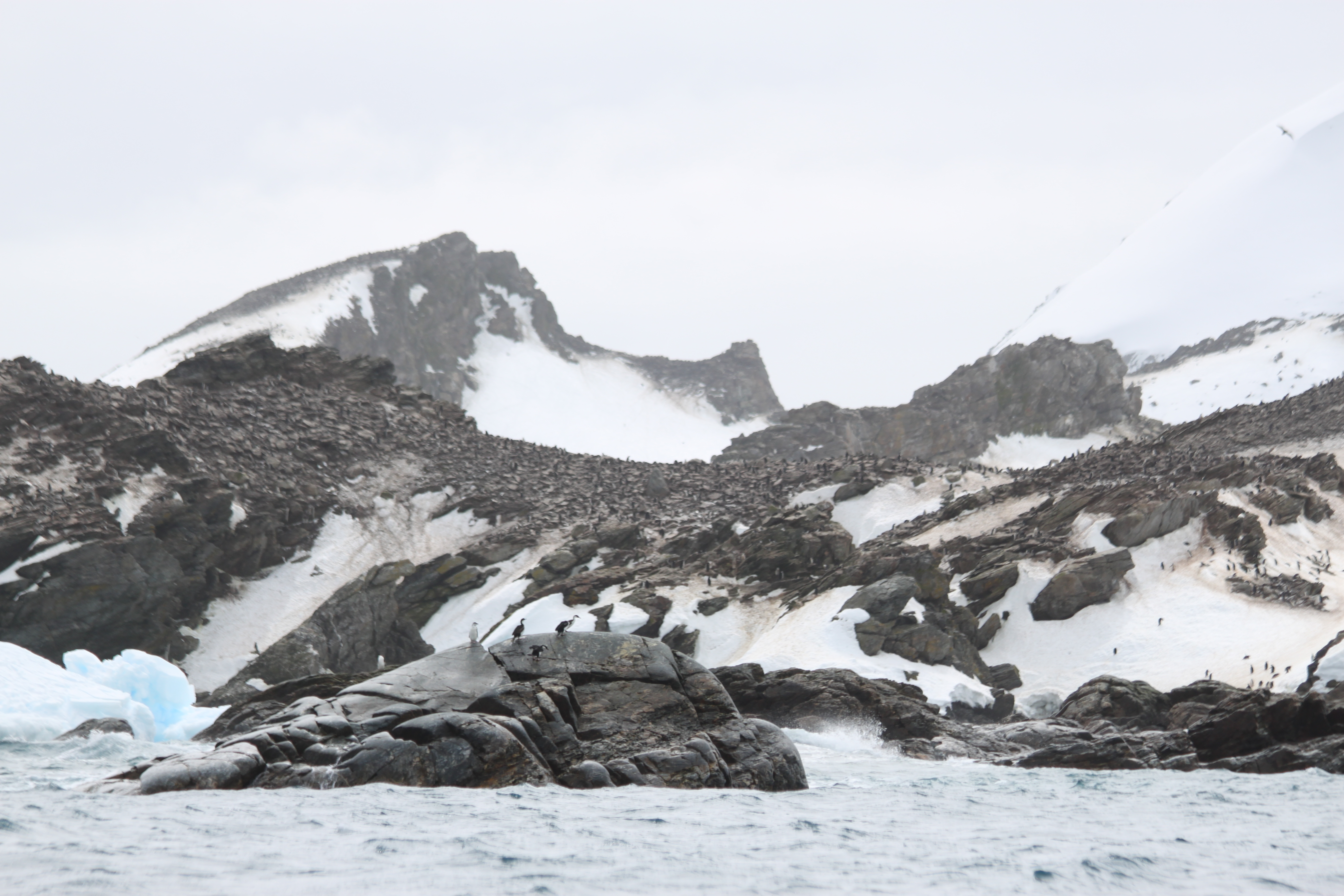 Nach dem Mittagessen geht es «raus»: bei einer Zodiac-Tour vor Monroe Island (benannt nach Nathaniel Palmer’s Schiff «James Monroe») bewundern wir eine grosse Kolonie von Zügelpinguinen. Es ist faszinierend zu sehen, welche Höhen die kleinen Frackträger zu ihren Brutplätzen scheinbar mühelos überwinden. Zahlreiche Eisberge, vom Weddellmeer hierher getrieben, haben sich vor der Insel angesammelt.