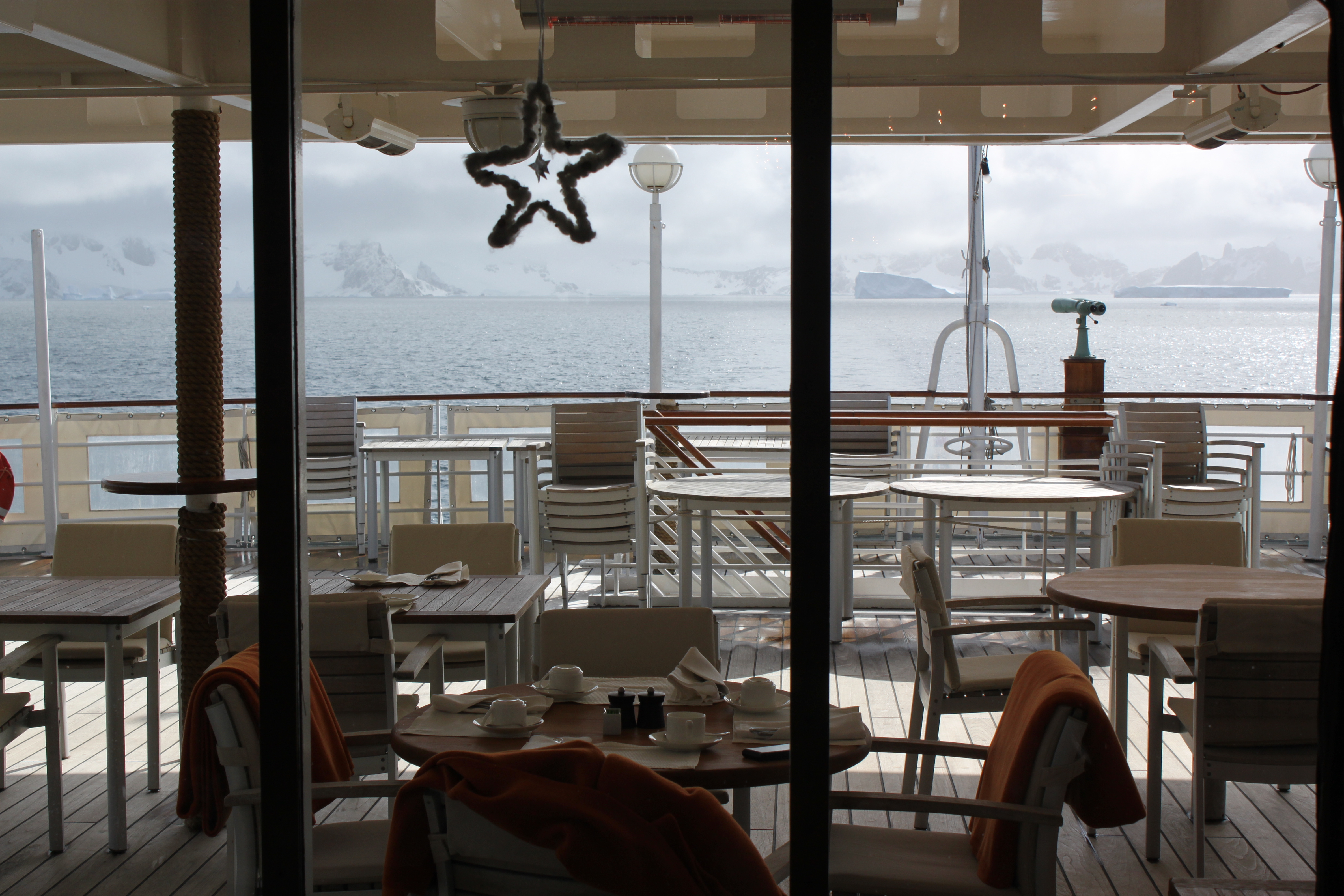 Zurück an Bord nutze ich die Seegang-freie Zeit: vom Cross Trainer im Fitness-Studio aus kann ich meinen Blick auch beim Sport treiben von dieser faszinierenden Szenerie und bezaubernden Kulisse einfach nicht ablassen…