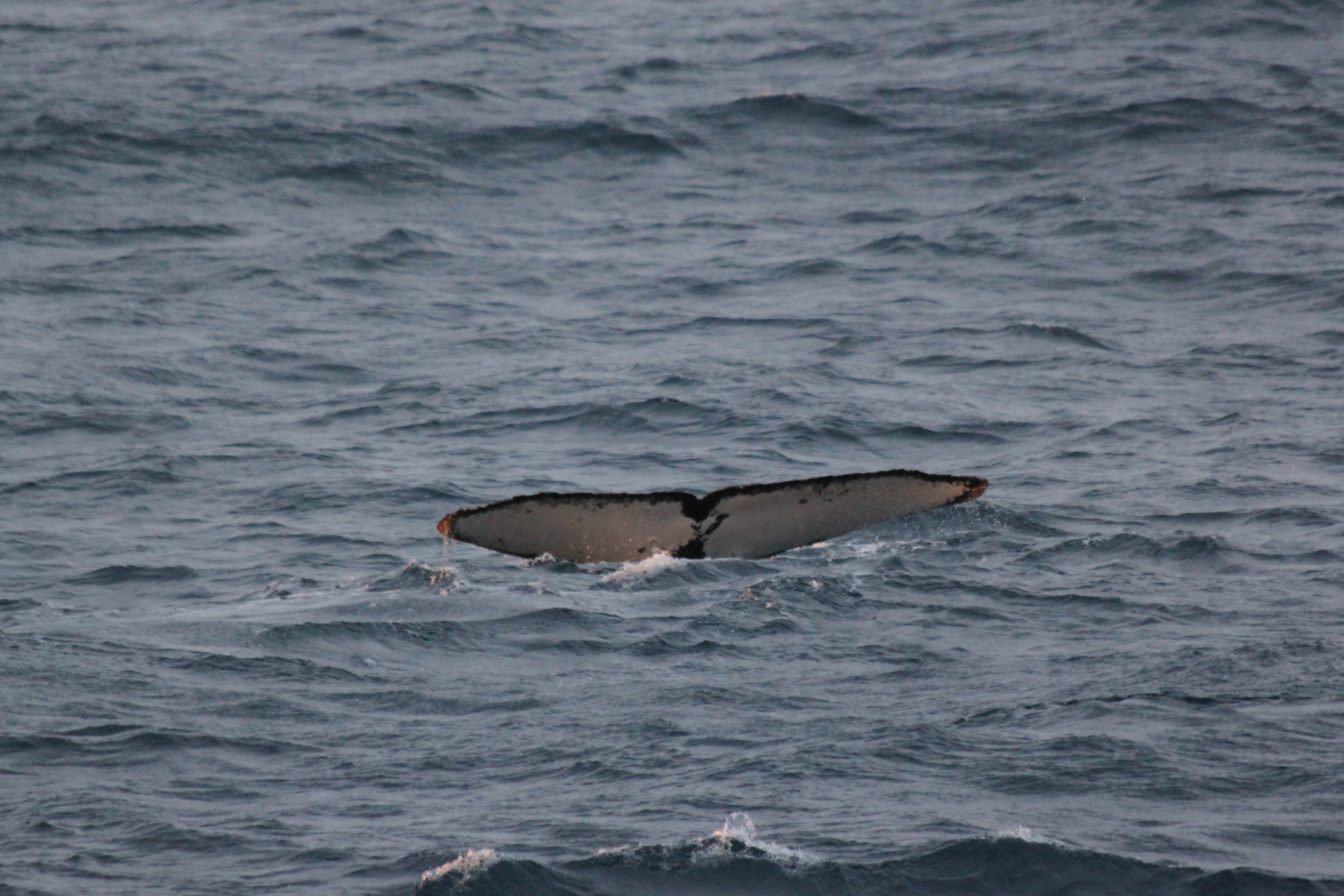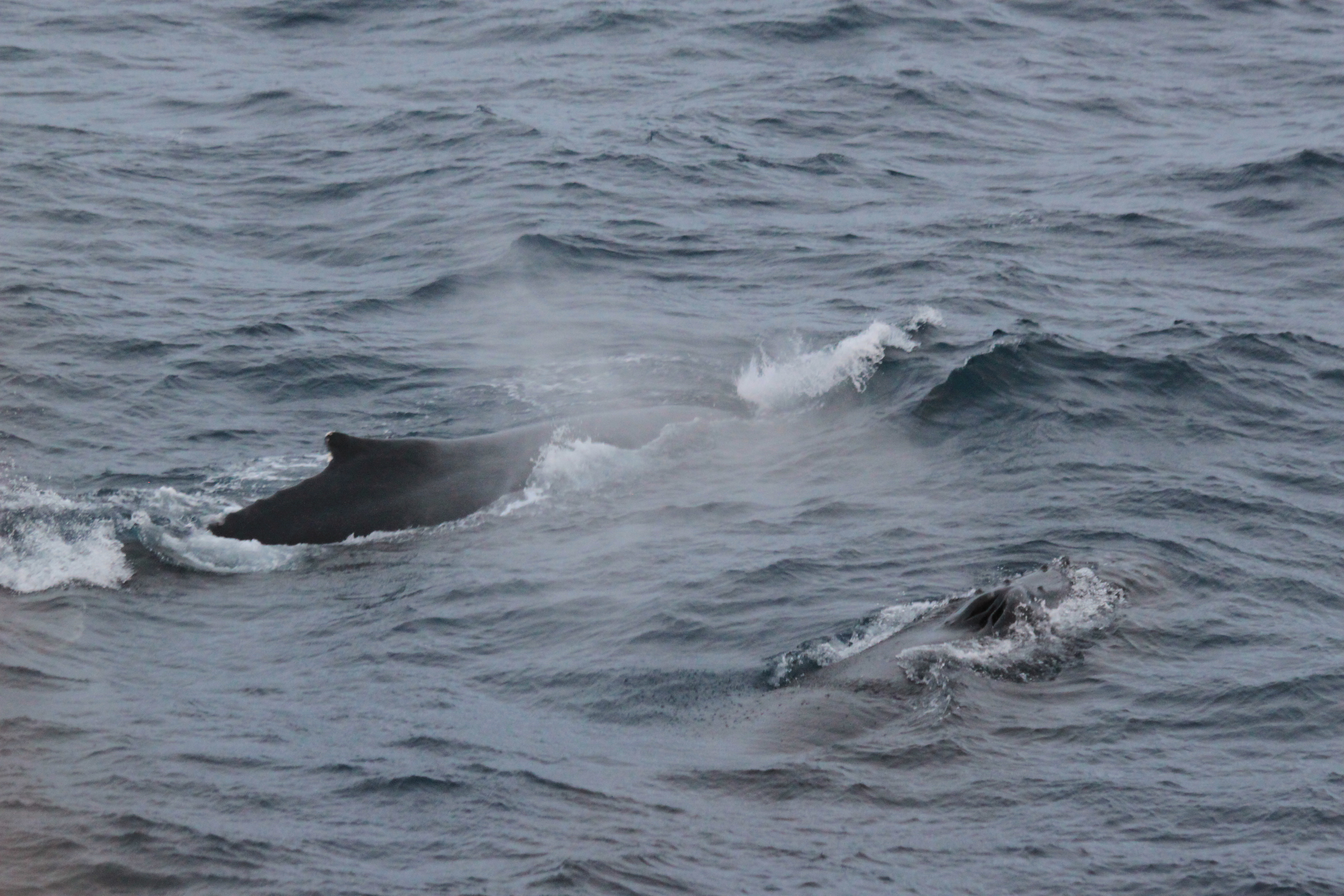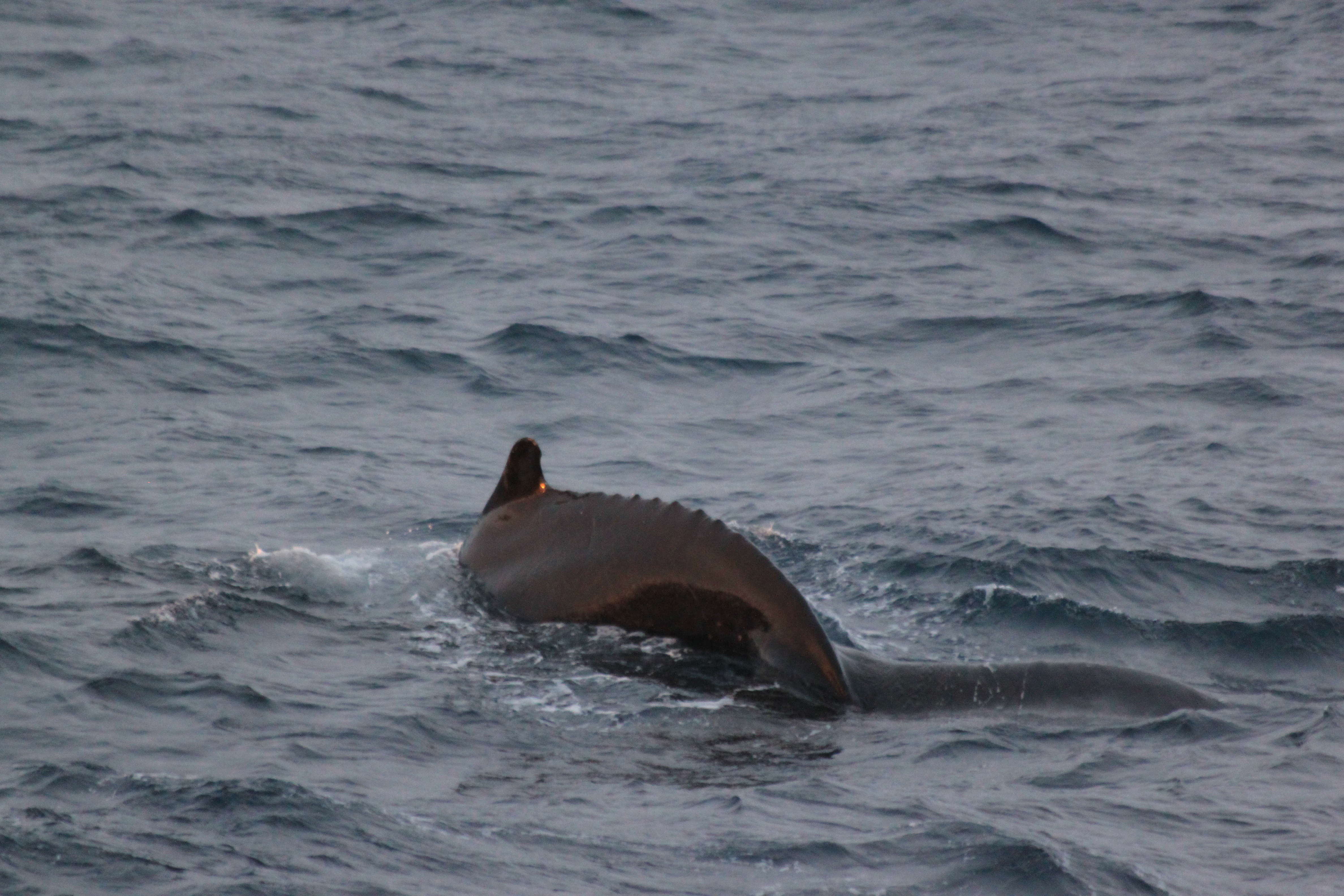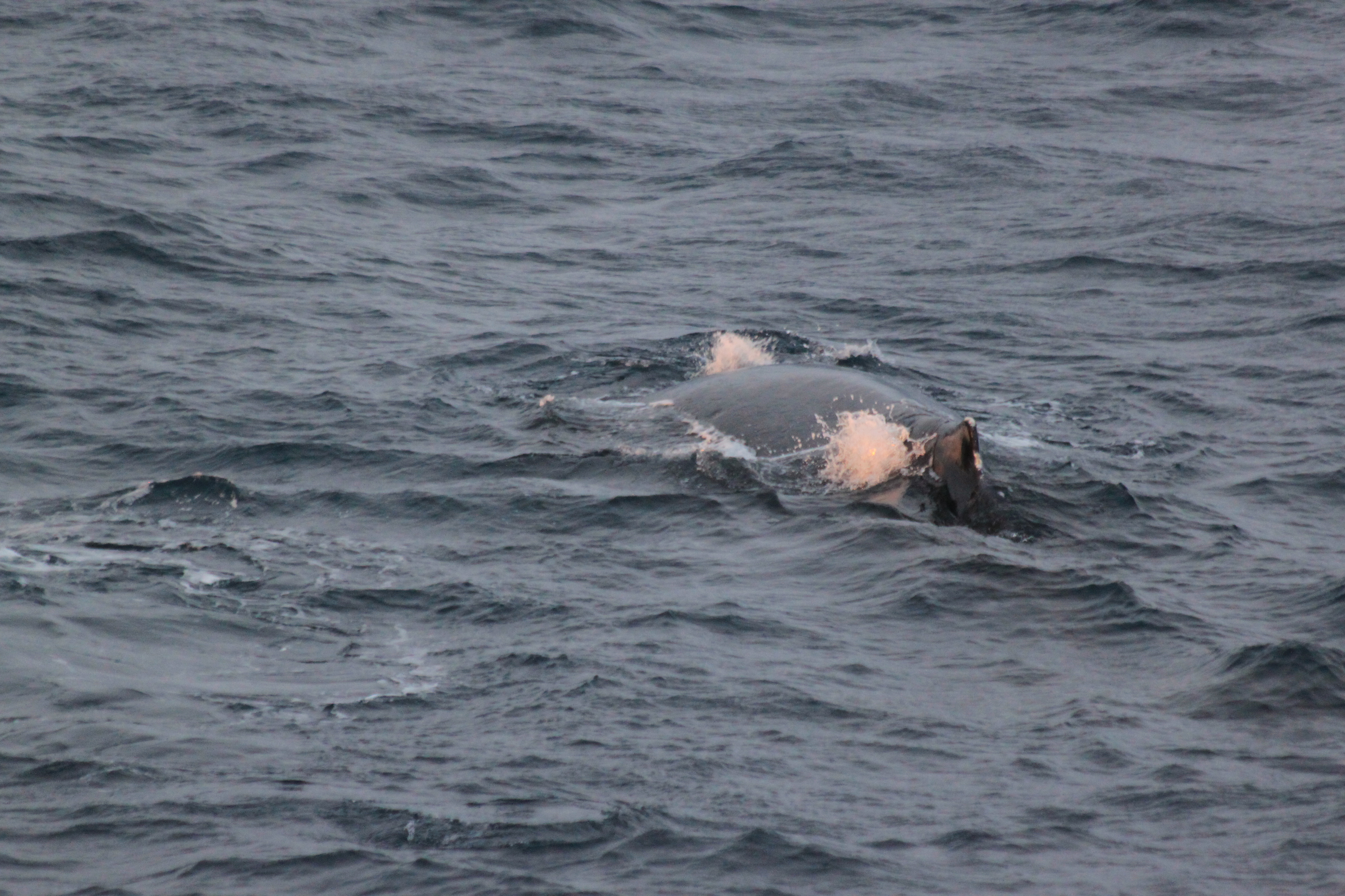 Während des Abendessens kommt die, nach dem Besuch von Stromnes und Grtyviken, langersehnte Durchsage: «Wale backbord»! Am Schiff sind zahlreiche Wale zu beobachten und die Restaurants leeren sich schlagartig – die Natur gibt ganz klar den Ton an! – und wir geniessen diesen Anblick! Was für ein Tag!